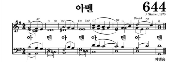 찬송가 644장 아멘 악보는 예배의 끝에서 하나님께 영광을 올려드릴 때 함께 부르시면 좋습니다.